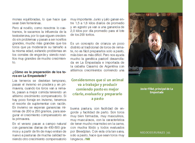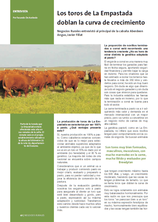 Los toros de La Empastada doblan la curva de crecimientoFuente: Revista Negocios Rurales, setiembre 2019